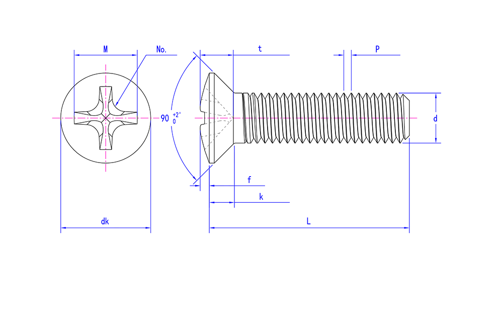 پیچ های سر تخت 90 درجه DIN965 با نوع H متقاطع